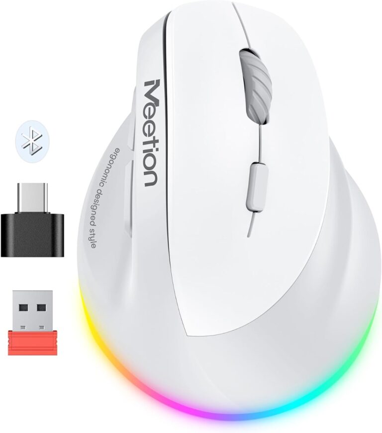 Meetion MT-BTM010R Δεξί Εργονομικό Ασύρματο Ποντίκι Λευκό + Γκρι