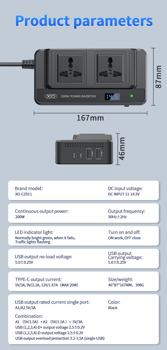 Μέγεθος/βάρος: 46*87*167mm, 398G