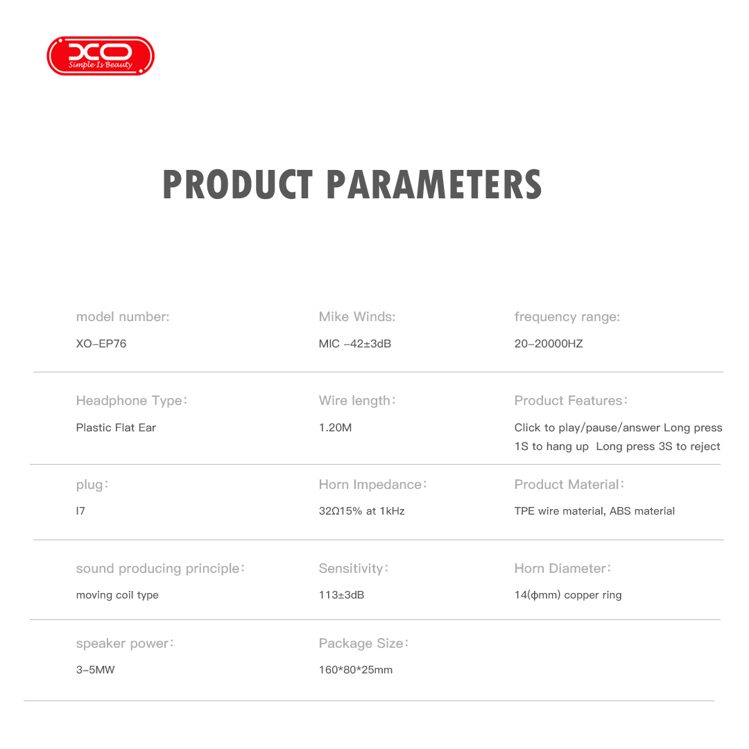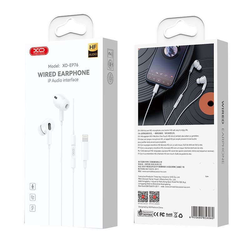 Τα XO EP76 είναι in-ear handsfree με βύσμα Lightning, για σύνδεση σε πιο σύγχρονες συσκευές της Apple, από το iPhone 5 και μετά.