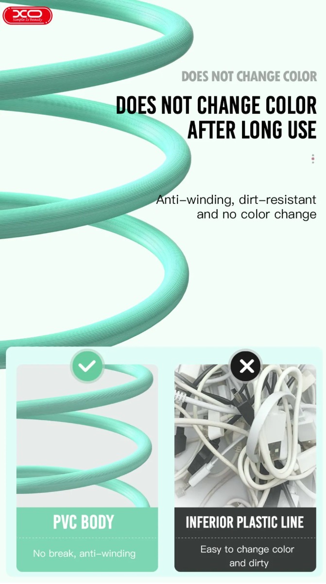 Το XO NB156 είναι ένα καλώδιο εξοπλισμένο με υποδοχή Lightning. Το καλώδιο έχει σχεδιαστεί για να εξασφαλίζει τη μεγαλύτερη δυνατή άνεση για καθημερινή χρήση. Κατασκευασμένο από εύκαμπτη σιλικόνη για να εξασφαλίζει τον μεγαλύτερο δυνατό χρόνο χρήσης. Μια ευρύτερη επιλογή χρωμάτων θα σας βοηθήσει να ξεχωρίσετε.