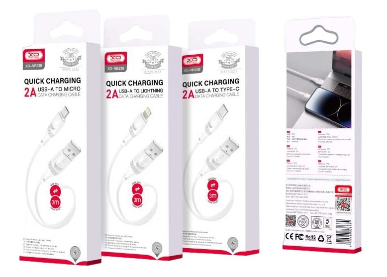 Το XO NB238 καλώδιο φόρτισης, που συνδέει συσκευές με υποδοχή Type-C στη θύρα USB του υπολογιστή ή του φορτιστή για συγχρονισμό και φόρτιση.Με μήκος 3m, είναι αρκετά επαρκές για τον ταυτόχρονο χειρισμό της συσκευής κατά την φόρτιστη της, ακόμα και αν ο φορτιστής δεν είναι δίπλα σε αυτή.